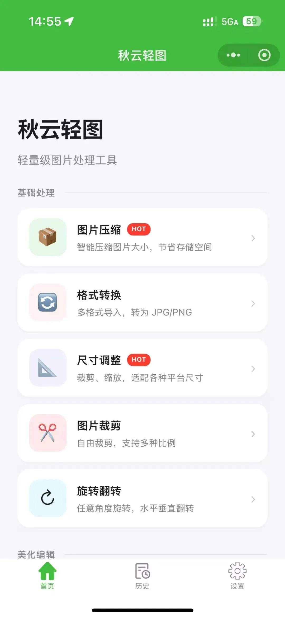 最近开发了一款微信小程序**「秋云轻图」**,主打图片处理功能。和市面上其他工具不同的是,所有处理都在你的手机上完成,图片不会上传到任何服务器,真正做到隐私安全。