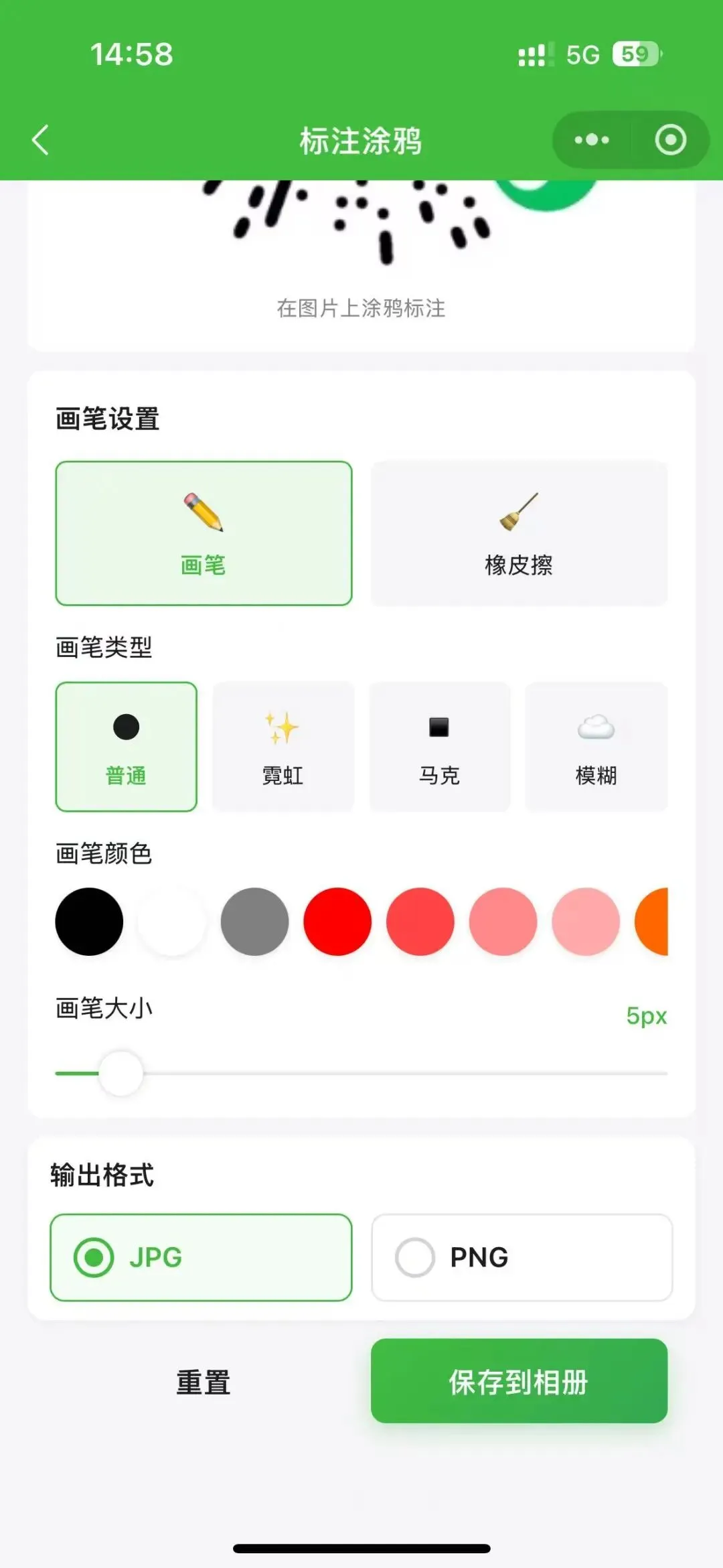 支持画笔和橡皮擦,可调节画笔粗细和颜色。处理完后直接保存,方便又快捷。