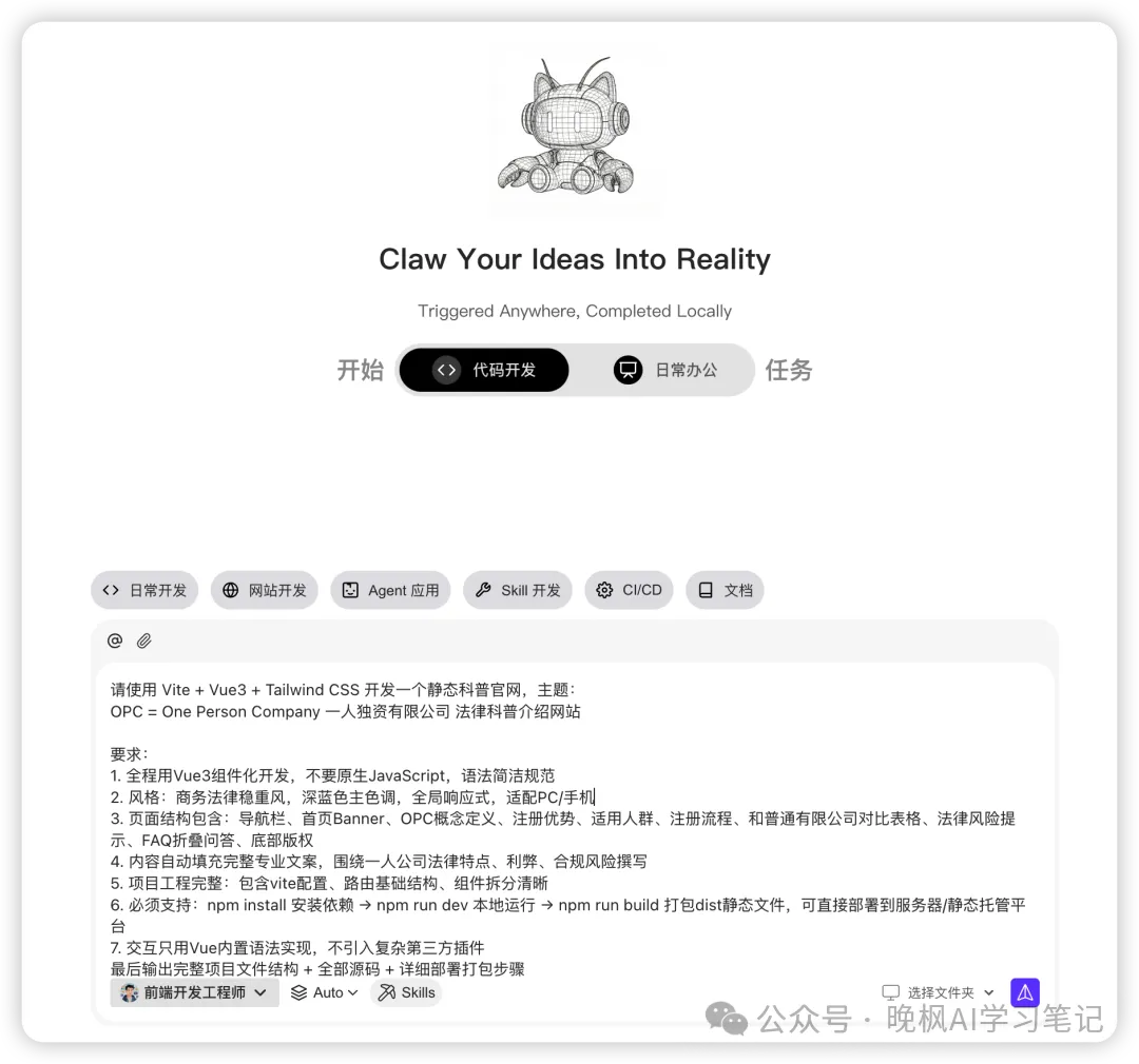 接下来,我把做这个 OPC 官网的完整步骤,一字不差地分享出来。