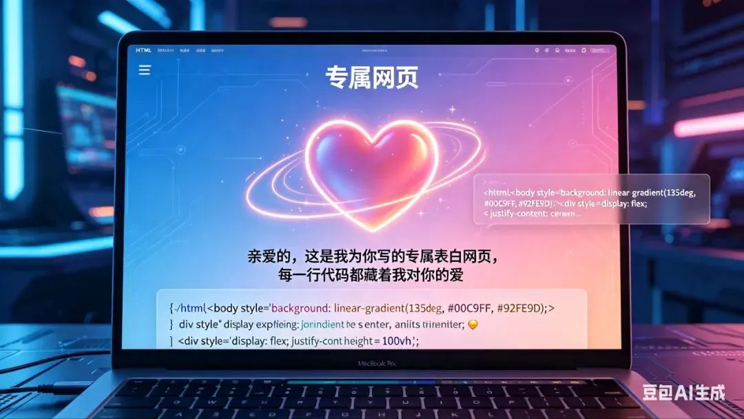 想给TA一个专属表白网页?HTML爱心代码帮你实现!用HTML搭建专属表白页面,嵌入爱心动画、告白文案、专属回忆,打造沉浸式告白体验。代码可自由编辑,自定义页面内容,把你们的故事藏进网页里,发送链接给TA,就是一场专属的浪漫告白,创意感拉满,让TA眼前一亮。